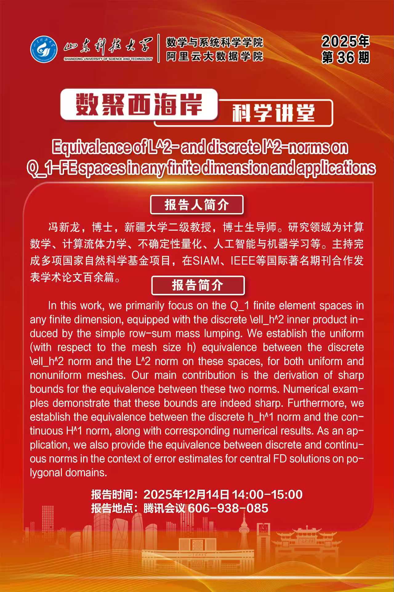 数聚西海岸科学讲堂2025年第36期:冯新龙教授学术报告