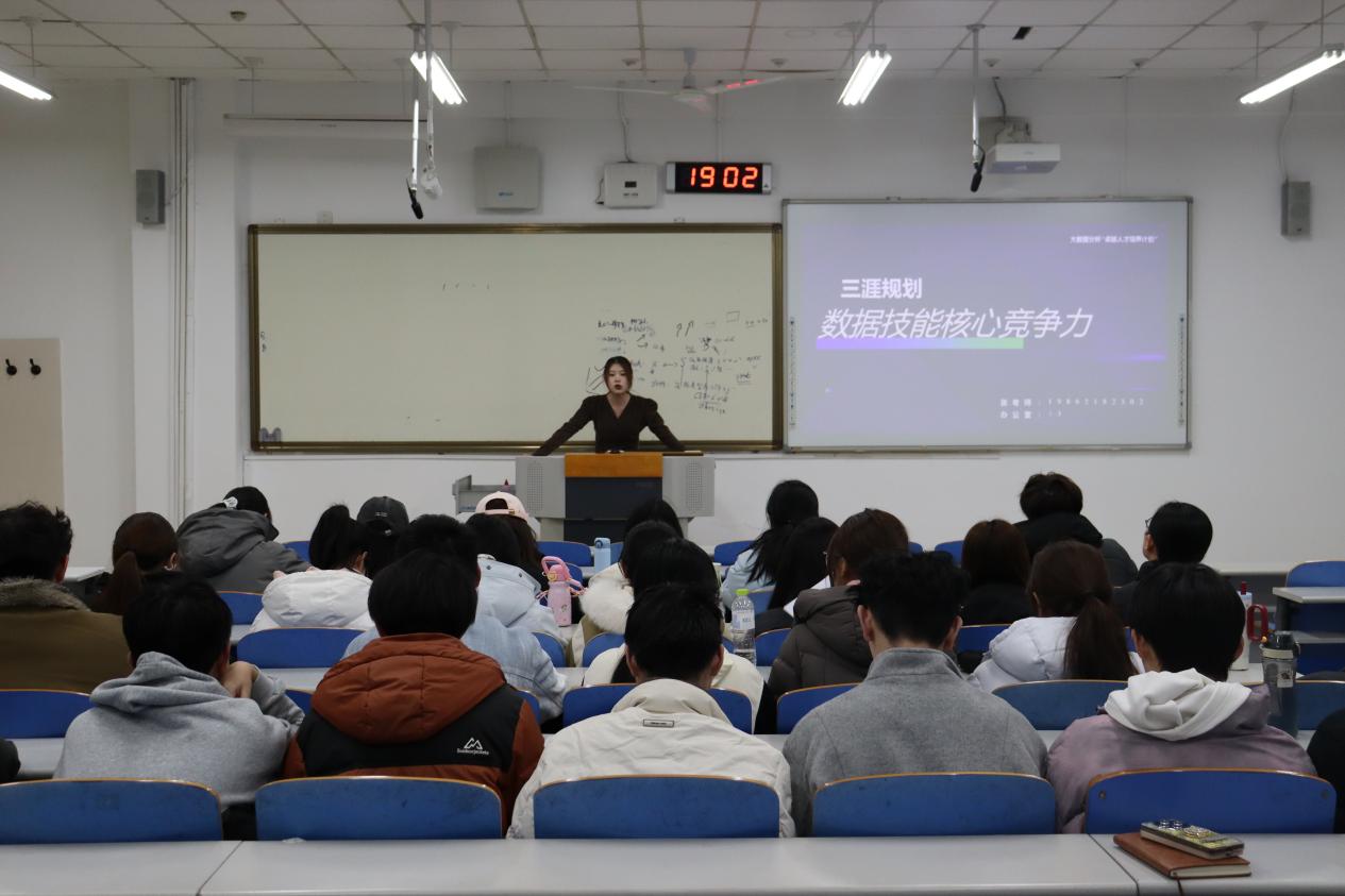 活动中,主讲人首先为同学们阐释了“三涯规划”的核心内涵,明确学习生涯、职业生涯与人生生涯的规划要点。随后结合数学、统计学、数据科学与大数据技术学科的专业特色与发展方向,从专业培养、就业环境、就业要求等多个维度,与同学们展开深入交流和细致剖析,为新生们厘清大学学习思路、明晰未来发展路径提供了实用指导。