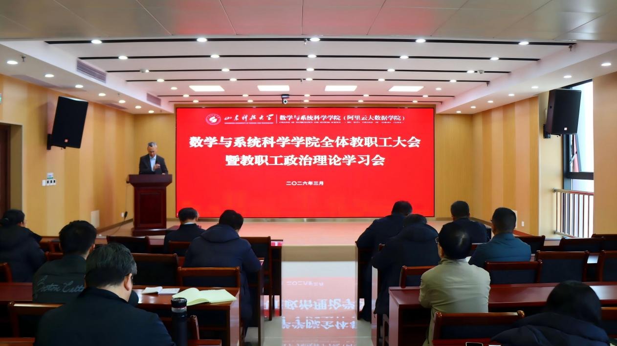 3月10日,数学学院在工程实训中心1603会议室召开2026年春季学期全体教职工大会。会议由学院党委书记贾红果主持,学院领导班子成员及全体教职工参会,全面总结2025年工作、部署2026年重点任务,为“十五五”规划开局起步凝聚共识、汇聚合力。
