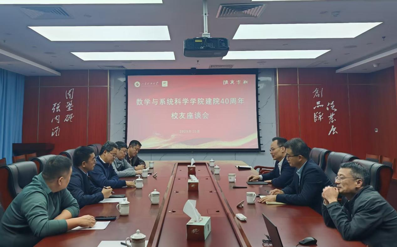 四秩耕耘,同谱华彩新章。10月18日,数学学院于工程实训中心1601会议室召开建院40周年校友座谈会。学院党委书记贾红果、院长董焕河、党委副书记兼副院长尹建,与数学学院济南校友会名誉会长王国英、会长李海涛等地方校友会代表座谈交流,共忆青春岁月,共绘发展蓝图。