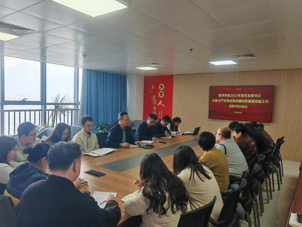 1月20日,数学学院党委召开2025年度党支部书记全面从严治党述责述廉和抓基层党建工作述职评议会议。学院党委书记贾红果主持会议,党委副书记兼副院长尹建及全体党支部书记参加会议。